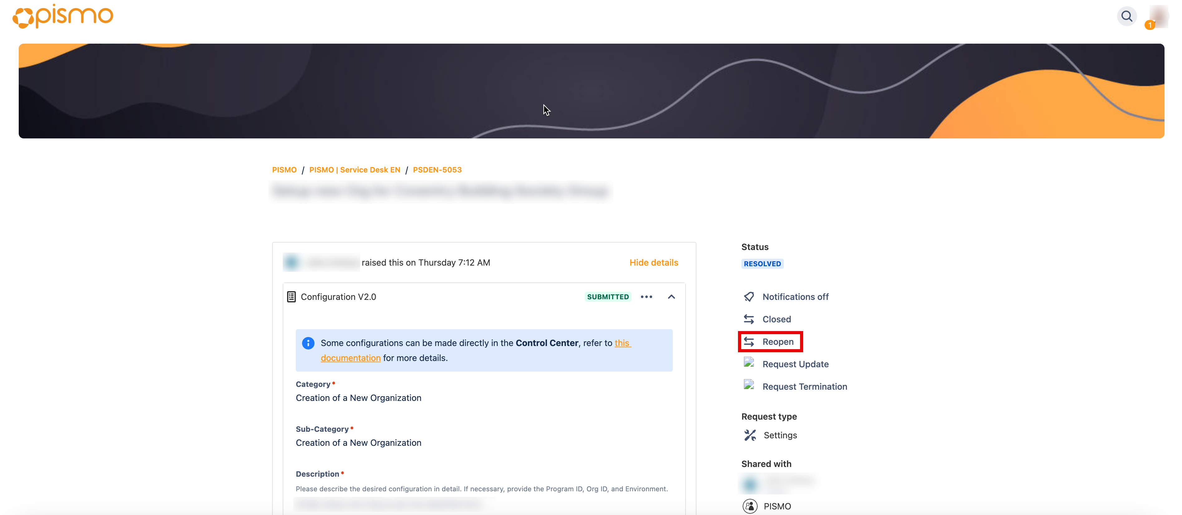 - If you are not satisfied with the resolution of your ticket, you should reopen your request instead of submitting a new one. This can be done by opening your ticket and selecting the Reopen link.